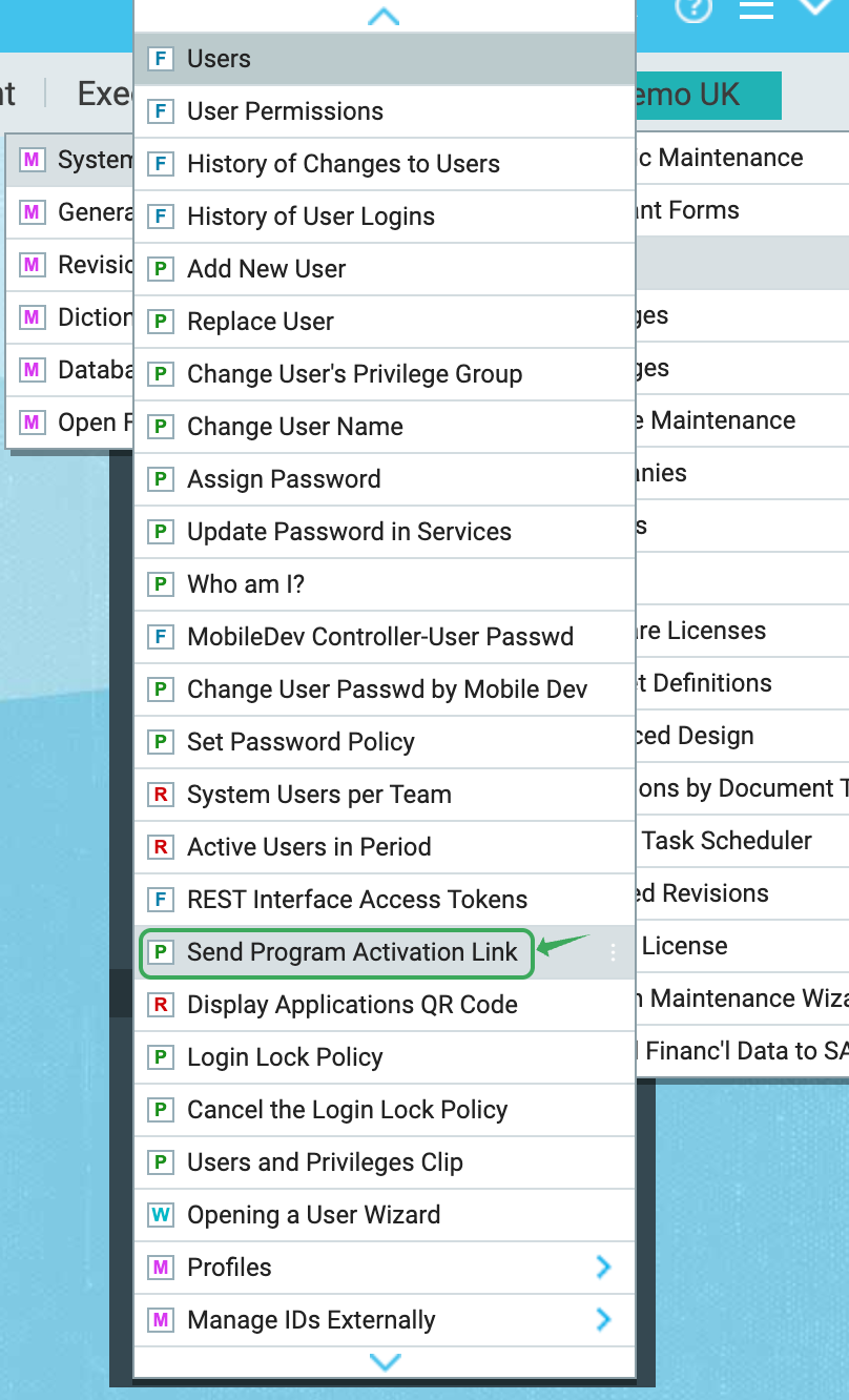 System Management --> System Maintenance --> Users --> Send Program Activation Link