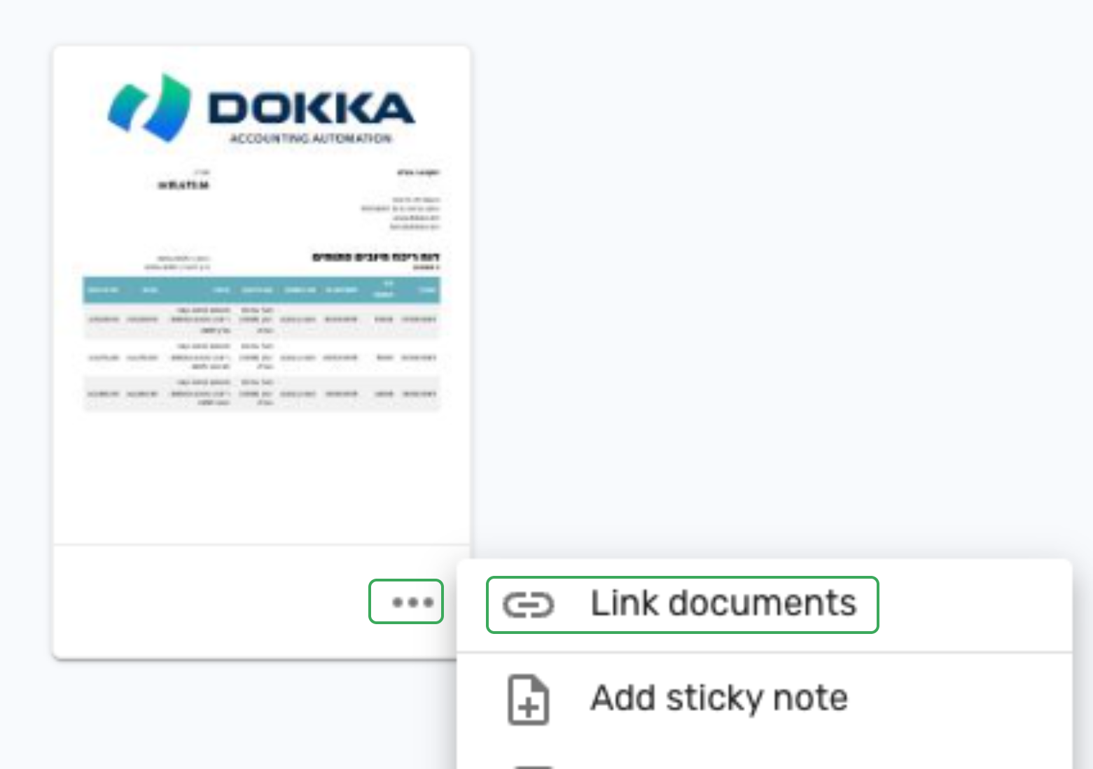 If you have two or more files in the system that you wish to group together on the digital workspace—to create a "Document Bundle" with a common denominator (e.g., invoices for payment or invoices for a specific processing date)- you can do so in DOKKA using the Link Documents function.