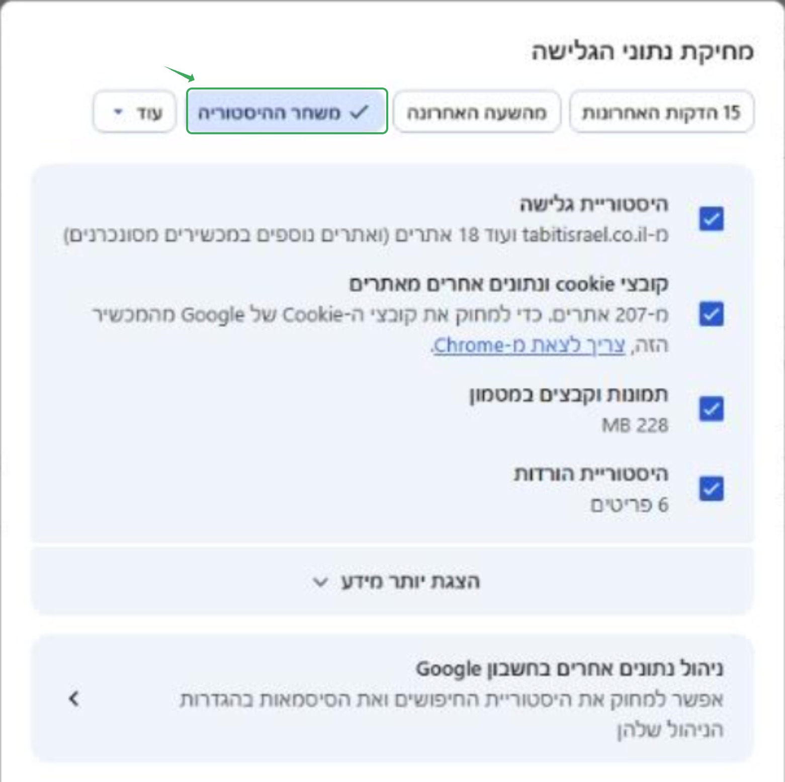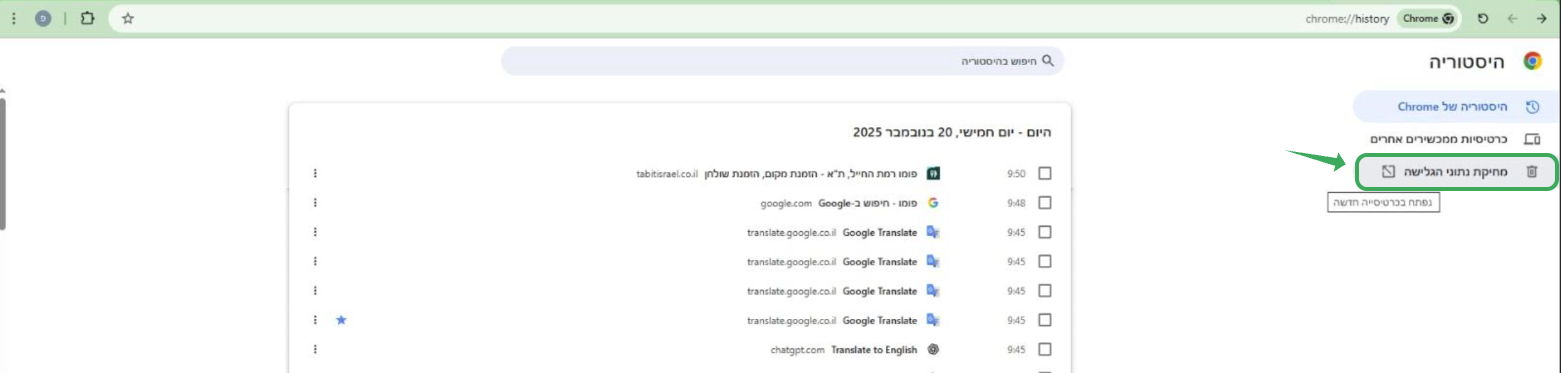 2. לחצו על ״מחיקת נתוני גלישה״