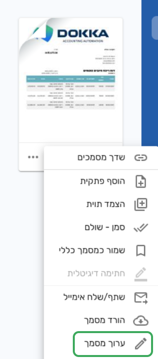 - לא ניתן לבצע גזירה של מסמכים שכבר נקלטו למערכת הנהלת החשבונות או שיש עליהם סבב אישורים פעיל.